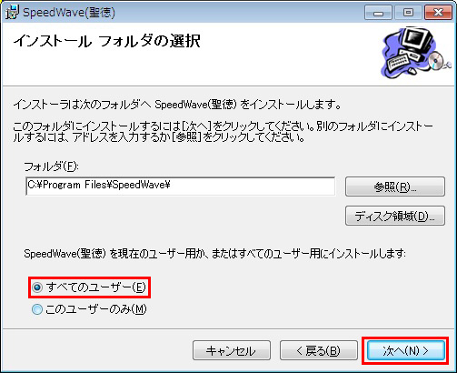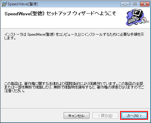 ここでは、SpeedWave(聖徳)をインストールする手順を解説します。(解説はWindows7の例ですが他のWindowsでも手順はほぼ同じです)