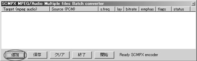 SCMPX MPEG/Audio Multiple files Batch converter 画面が表示されます。