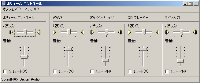 1.メニューから「オプション」->「プロパティー」と選択します。 プロパティー画面が表示されます。 2.音量の調整のところの録音をクリックします。 3.「WAVE出力ミックス」のチェックを付けます。 「OK」をクリックします。 録音コントロールに「WAVE出力ミックス」が追加されています。 このマシンでは「WAVE出力ミックス」ですが、この名前はマシンによって異なります。 「ステレオ出力」「STEREO OUT」等がある場合はそれをチェックして下さい。