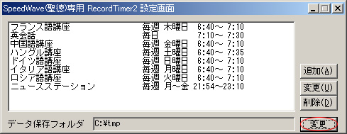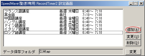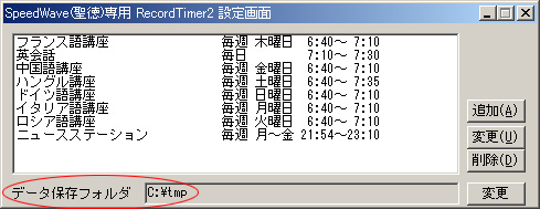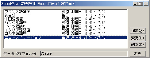 時間を指定してSpeedWave(聖徳)を録音モードで起動し、自動的にファイルをセーブします。