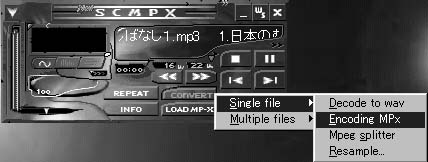 「CONVERT」ボタンから「Single file」→「Encode MPx」を選択します。