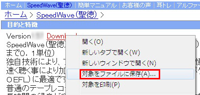 1.SpeedWave(聖徳)のページからダウンロードを左クリックまたは右クリックして「対象をファイルに保存」を選択します。